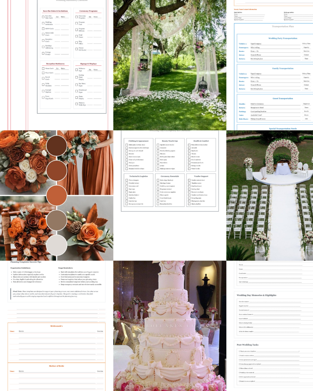 - Mood boards, color palette pages, centerpiece & table setting planner