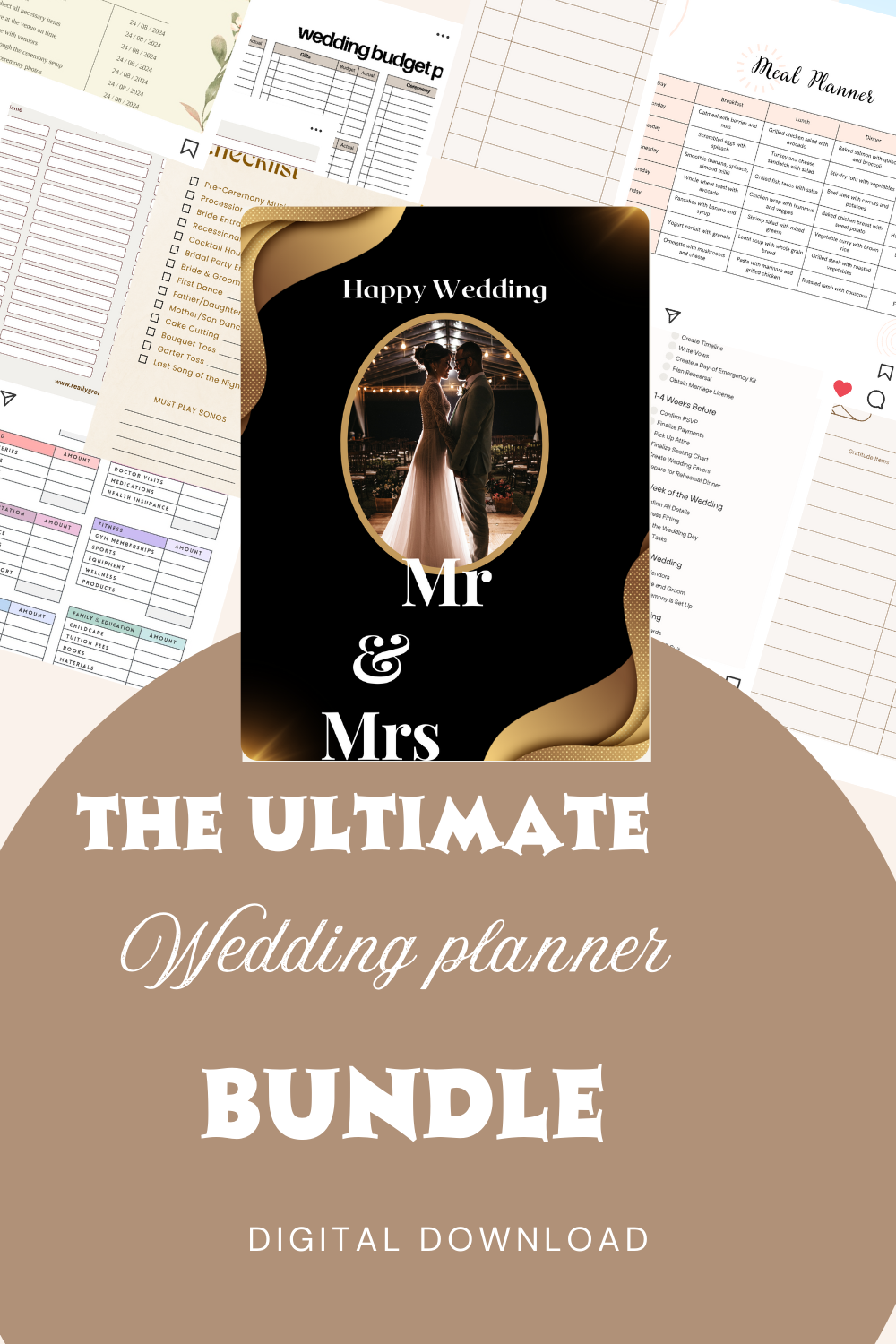 Wedding Planner Template (Printable & Fillable) — Instant Download Plan your big day with calm, clarity, and zero guesswork. This all-in-one Wedding Planner bundles step-by-step timelines, budget tools, vendor & contract trackers, guest/RSVP & seating charts, and day-of coordination sheets—plus guided prompts that help you make decisions fast and stay on budget. Fully customizable, printable, and fillable so you can use only what you need. What’s inside Structured timelines: 12+ months → week-of → wedding day → post-wedding Budget & payments: planned vs. actual, deposits, due dates, tips Vendors & logistics: comparisons, contracts, delivery/pickup, contact sheet Guests & seating: RSVPs, dietary/access needs, meal counts, seating charts Design & décor: mood boards, table settings, rentals, signage & lighting Day-of tools: run-of-show, roles, emergency kit, photo/video shot lists Formats PDF (US Letter & A4) printable + fillable PDF (type on laptop/tablet) Good to know Instant digital download—no physical item. Personal use only. Print at 100% (“Actual Size”) for best results.